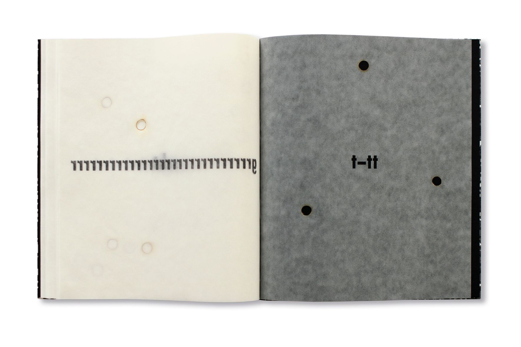 Die 35 Zeilen des Gedichts werden über die Seiten des Buches verteilt. Pro Seite gibt es nur eine Zeile. Bedingt durch die Transparenz des Pergaminpapiers scheinen die vorherigen und folgenden Zeilen durch. Auf jeder linken Seite ist die Schrift spiegelverkehrt, auf jeder rechten seitenrichtig lesbar. Durch die Auswahl der serifenlosen Schriftart (Futura schmalfett) erinnern die kleingeschriebenen t-Buchstaben an die Kreuze gefallener Soldaten. Die bedruckten Buchseiten werden durch 72 eingebrannte Löcher »verletzt«, die an Einschusslöcher erinnern. Somit ist jedes Buch ein Unikat.